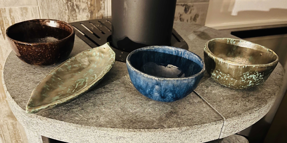 Bei den Glasuren achte ich auf bleifreiheit und Gesundheit. Die Farbpalette reicht von knallig bunt, glänzend, matt bis zu naturverbunden. Jede Glasur reagiert im Brennofen ein wenig anders – dieses Unvorhersehbare macht für mich den Zauber der Keramik aus. Gebrannt wird in der Regel im Elektroofen bei Temperaturen zwischen 1050 und 1250 Grad, damit die Stücke alltagstauglich werden: für den Garten, für die Lieblingsrituale im Alltag, für das Schöne dieser Welt.